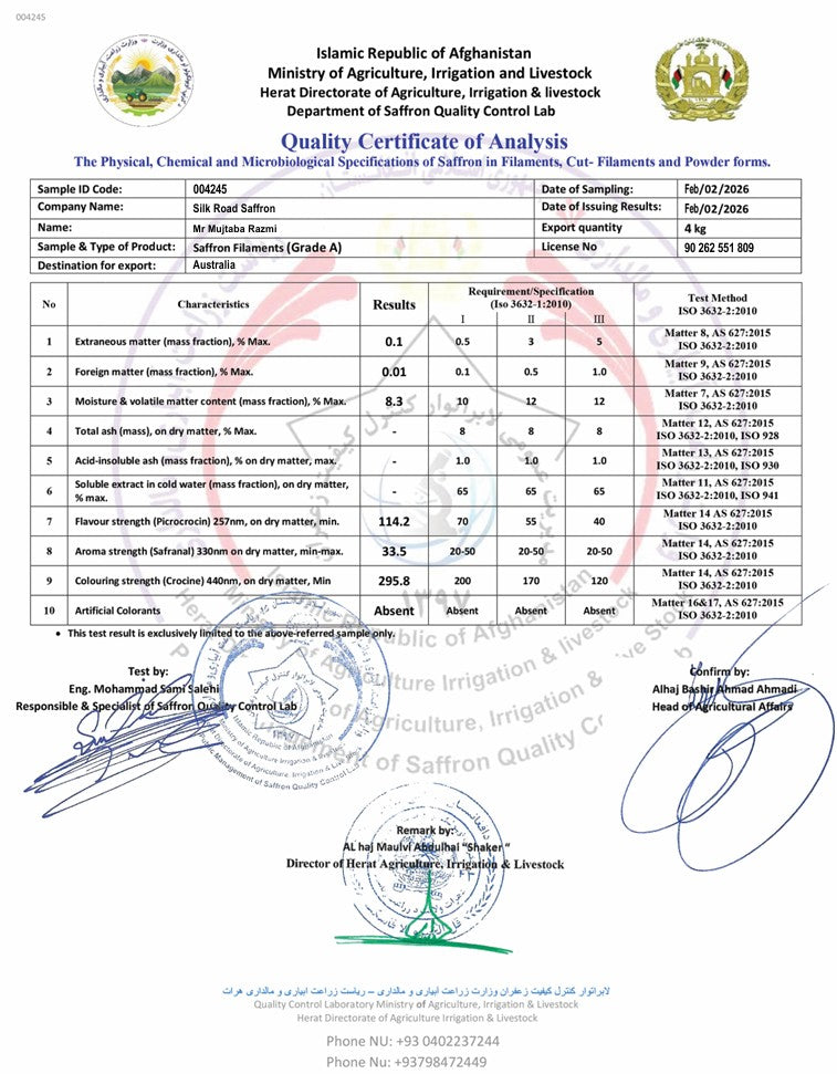 These results place this batch firmly within ISO 3632 Category I, the highest international quality classification.